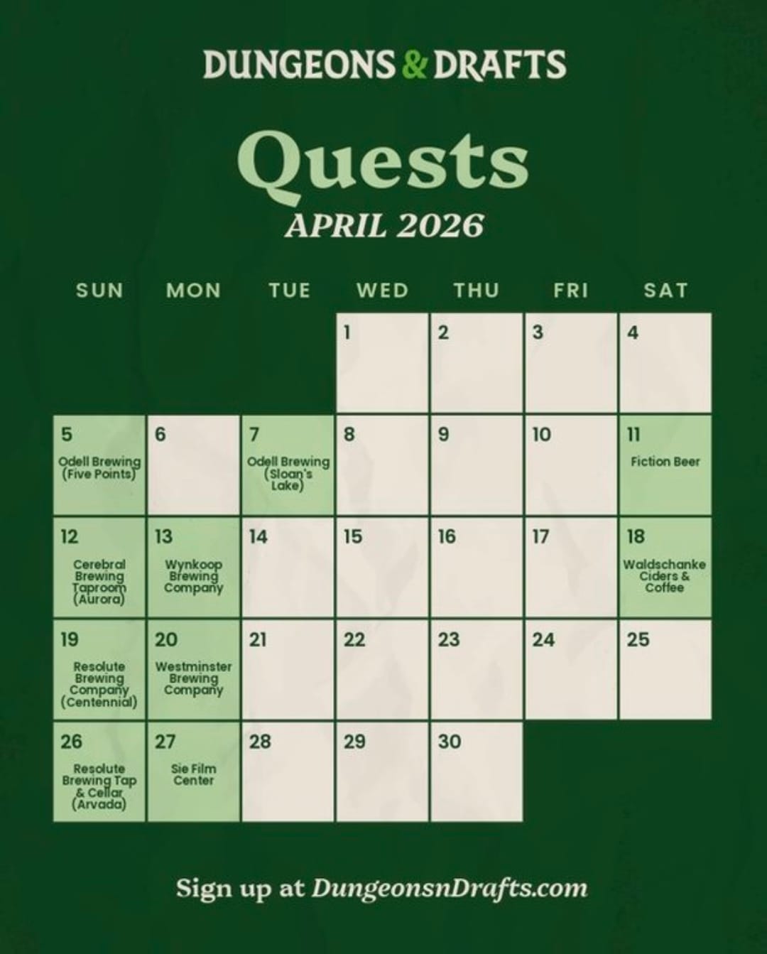 Dungeons n' Drafts brings D&D to breweries around Colorado. Characters and materials are provided and all experience levels welcome. This is the perfect opportunity to try a one-shot before heading into a 4-session campaign. Each DM has an individually crafted game, and the craft beers at Odell make it even better.
